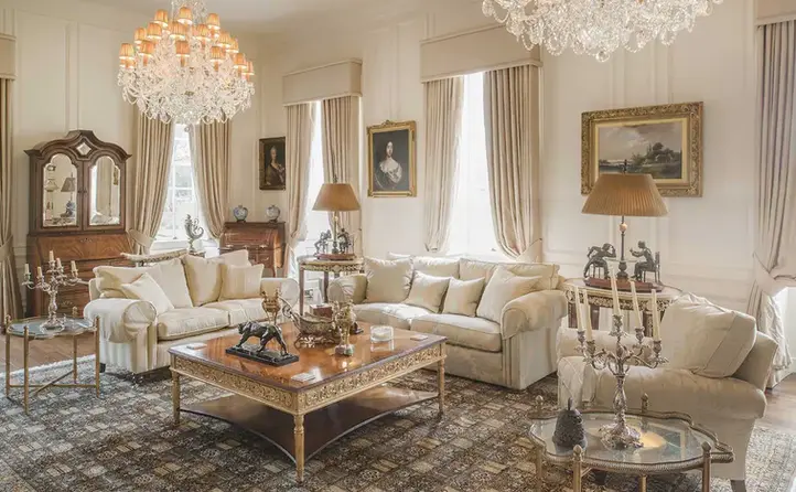 During your stay at Hinwick House, you'll enjoy the luxury of a private hotel room within the estate itself, surrounded by 18 beautiful bedrooms, 6 spacious living rooms, and 38 acres of stunning grounds.